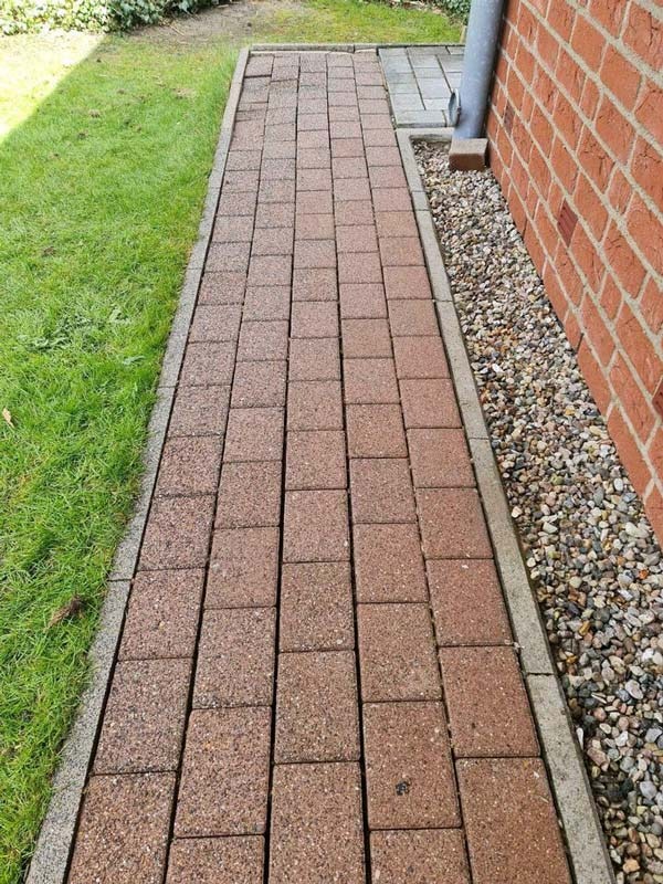 Mit modernster Wasserstrahltechnik entfernen wir effektiv Algen, Moos, Flecken und unerwünschtes Unkraut von Hofeinfahrten, Terrassen und Gartenwegen.